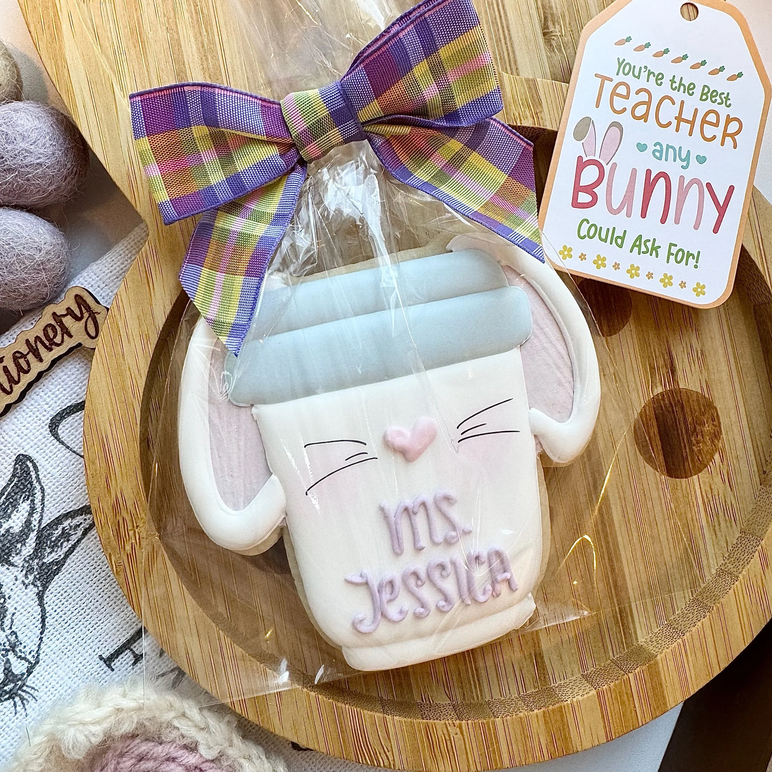 Image 1 of 1 Teacher Bunny Latte- Personalized $7.00 Single bunny cookie. Please send personalization Add To Cart Added! Single bunny cookie. Please send personalization