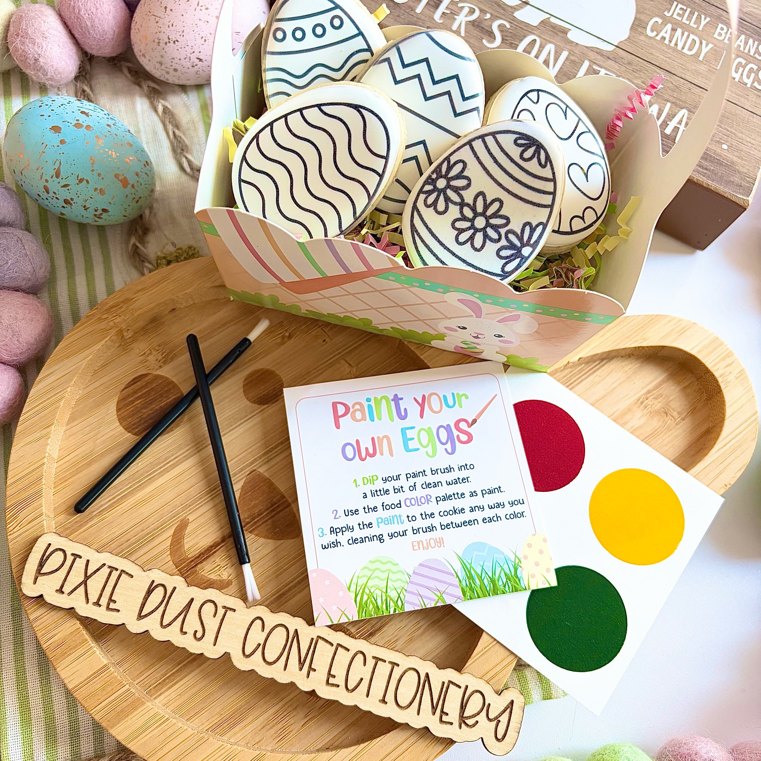 Image 1 of 1 Paint your own eggs $15.00 6 mini eggs to paint in a basket with a paint palette and paintbrush Add To Cart Added! 6 mini eggs to paint in a basket with a paint palette and paintbrush